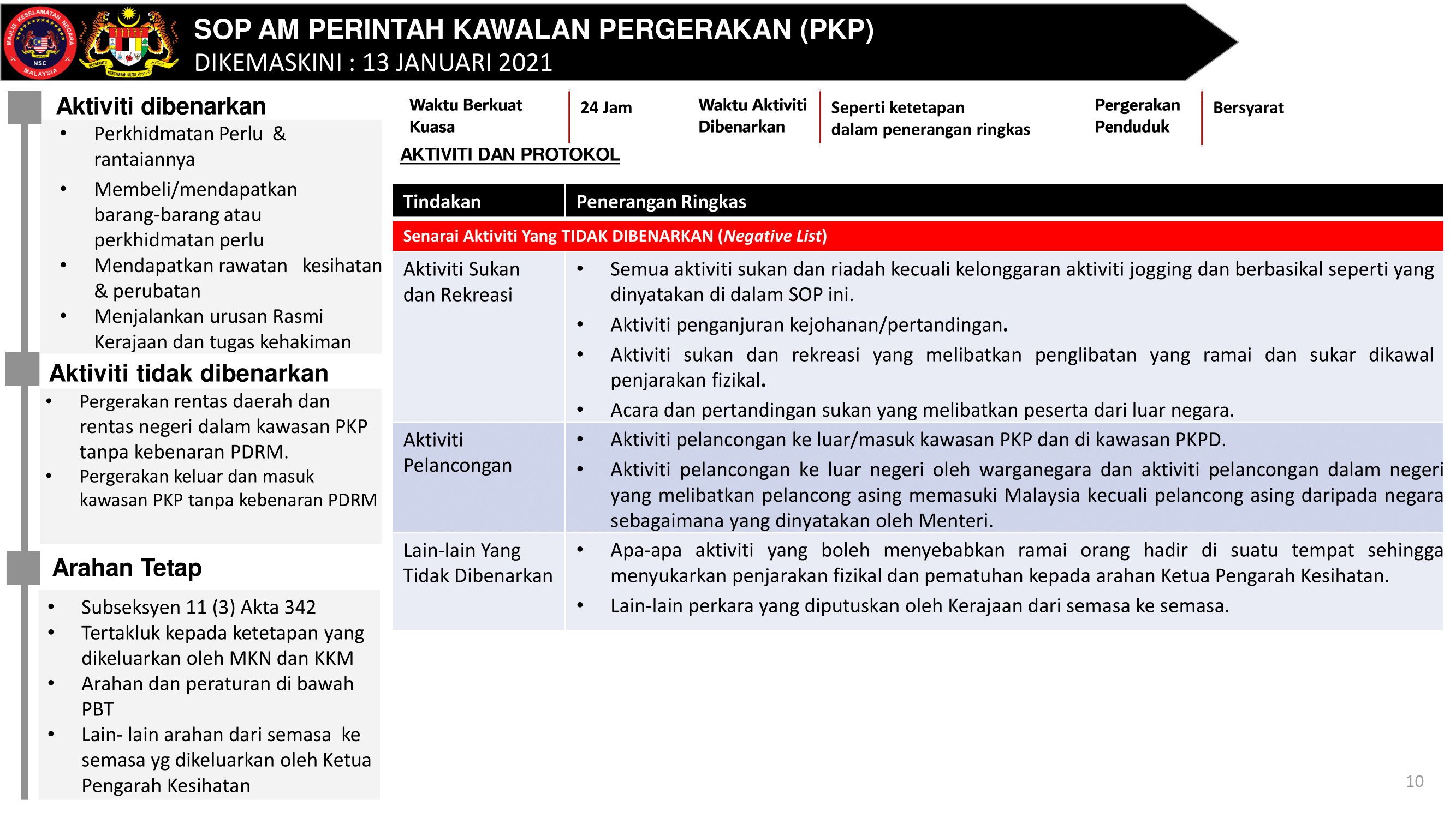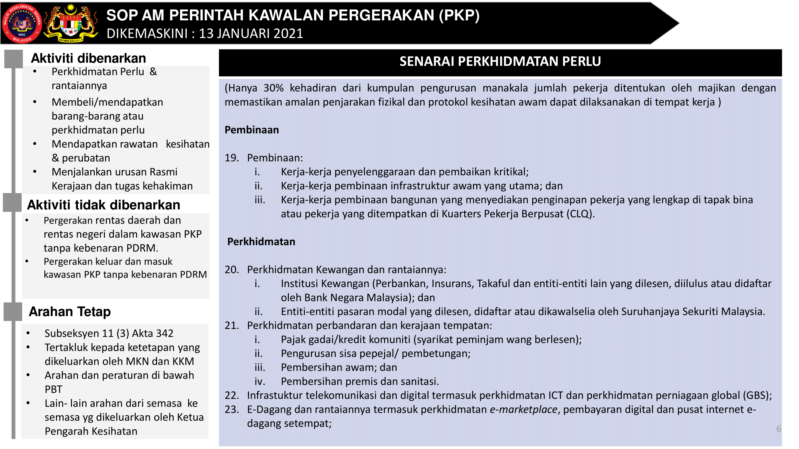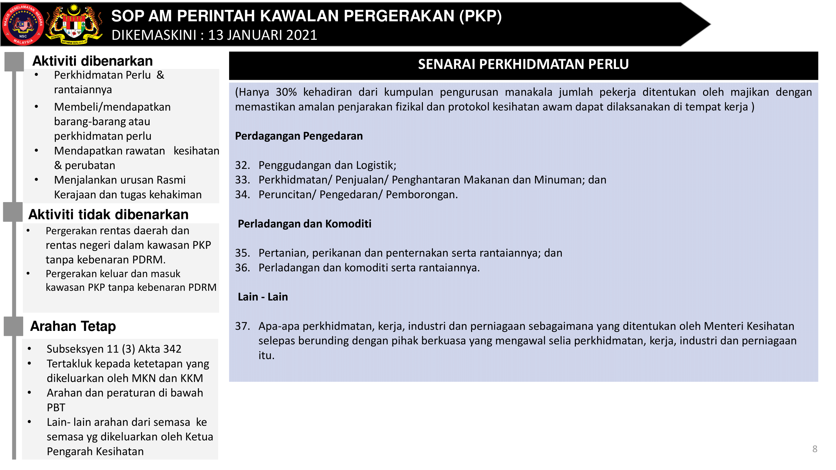 12 Januari 2021: SOP Am Perintah Kawalan Pergerakan (PKP)