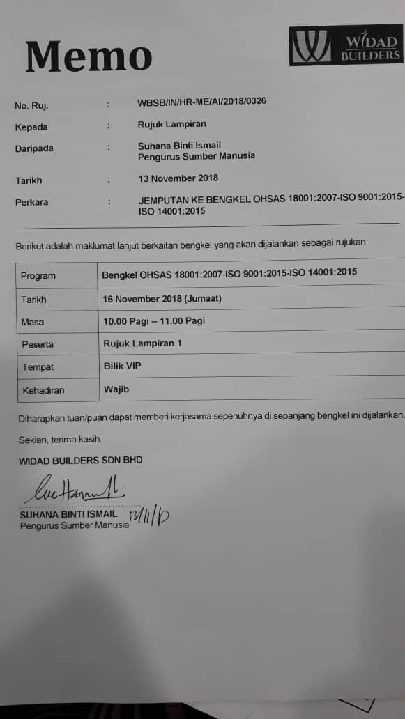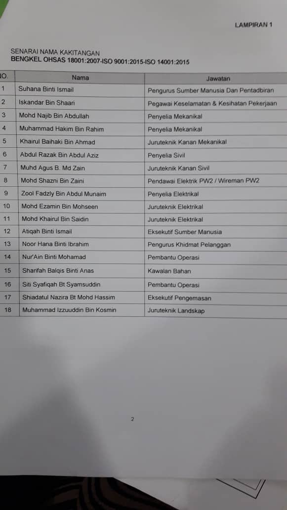 Perkara: JEMPUTAN KE BENGKEL OHSAS 18001:2007-ISO 9001:2015-ISO 14001:2015