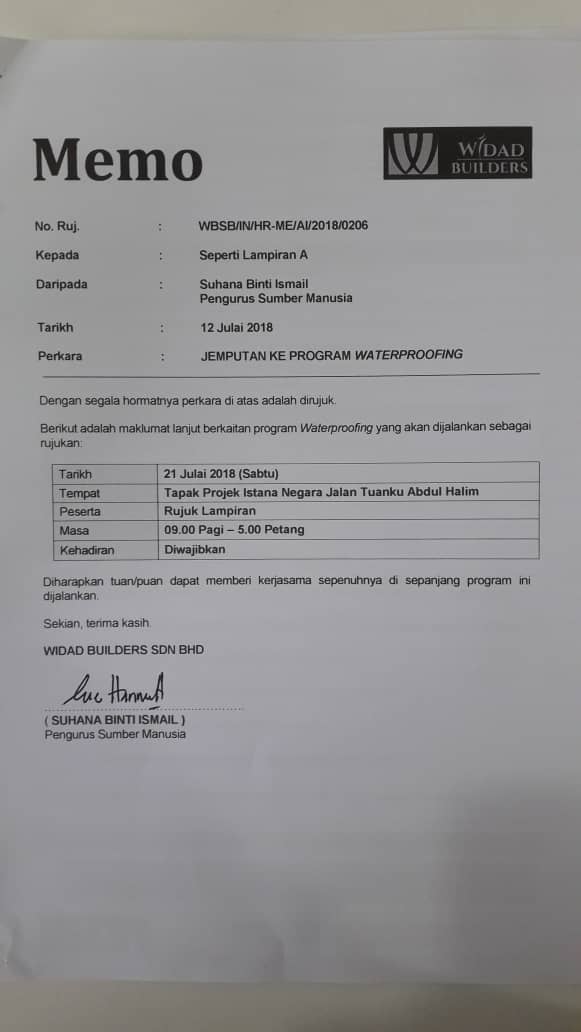 Berikut adalah maklumat lanjut berkaitan program Waterproofing yang akan dijalankan sebagai rujukan: